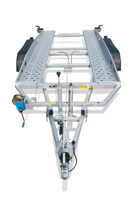 Lichtanlage mit Rückfahrscheinwerfer und Stecker 13-polig, Seilwindenbock, Seilwinde mechanisch (900 kg) mit Umlenkrolle, Gelochte, rutschfeste Laufschienen, Extra starke Leuchtkästen, 2 Stück Zurrbügel in Laufschiene vorn, Feuerverzinkte Stahl-Radabdeckungen inkl. Anti-Rutsch Belag, 2 Stück Zurrbügel in Laufschiene hinten